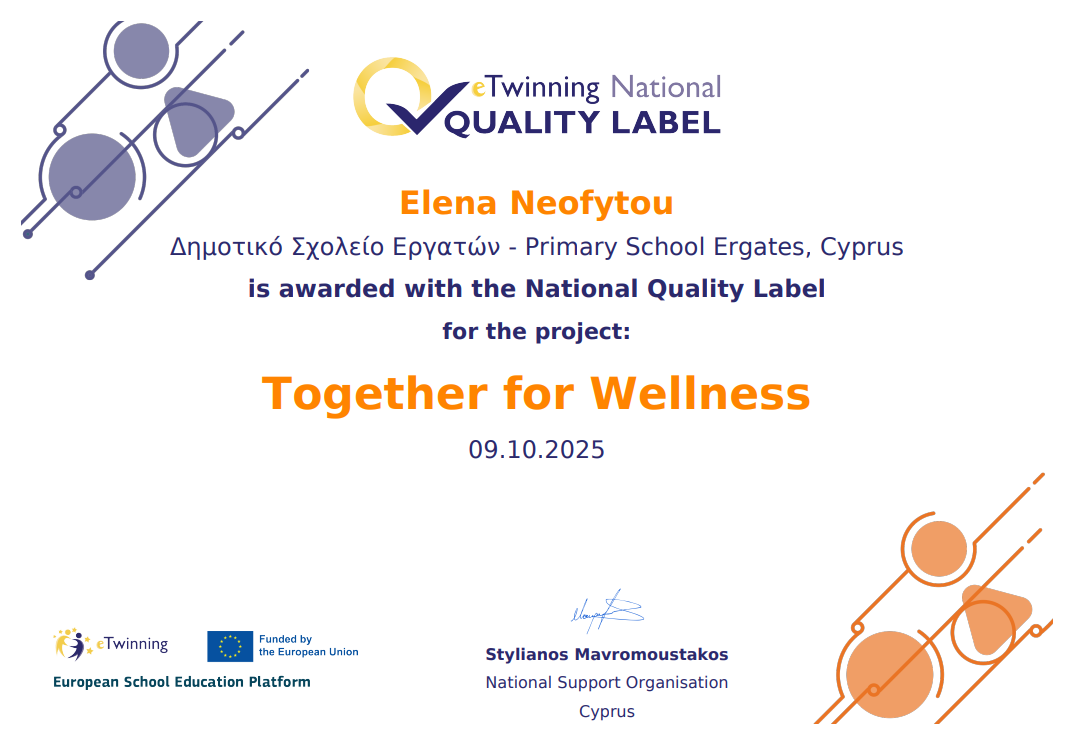 9 Οκτωβρίου 2025: Εθνικές Ετικέτες Ποιότητας για το έργο μας "Together for Wellness"